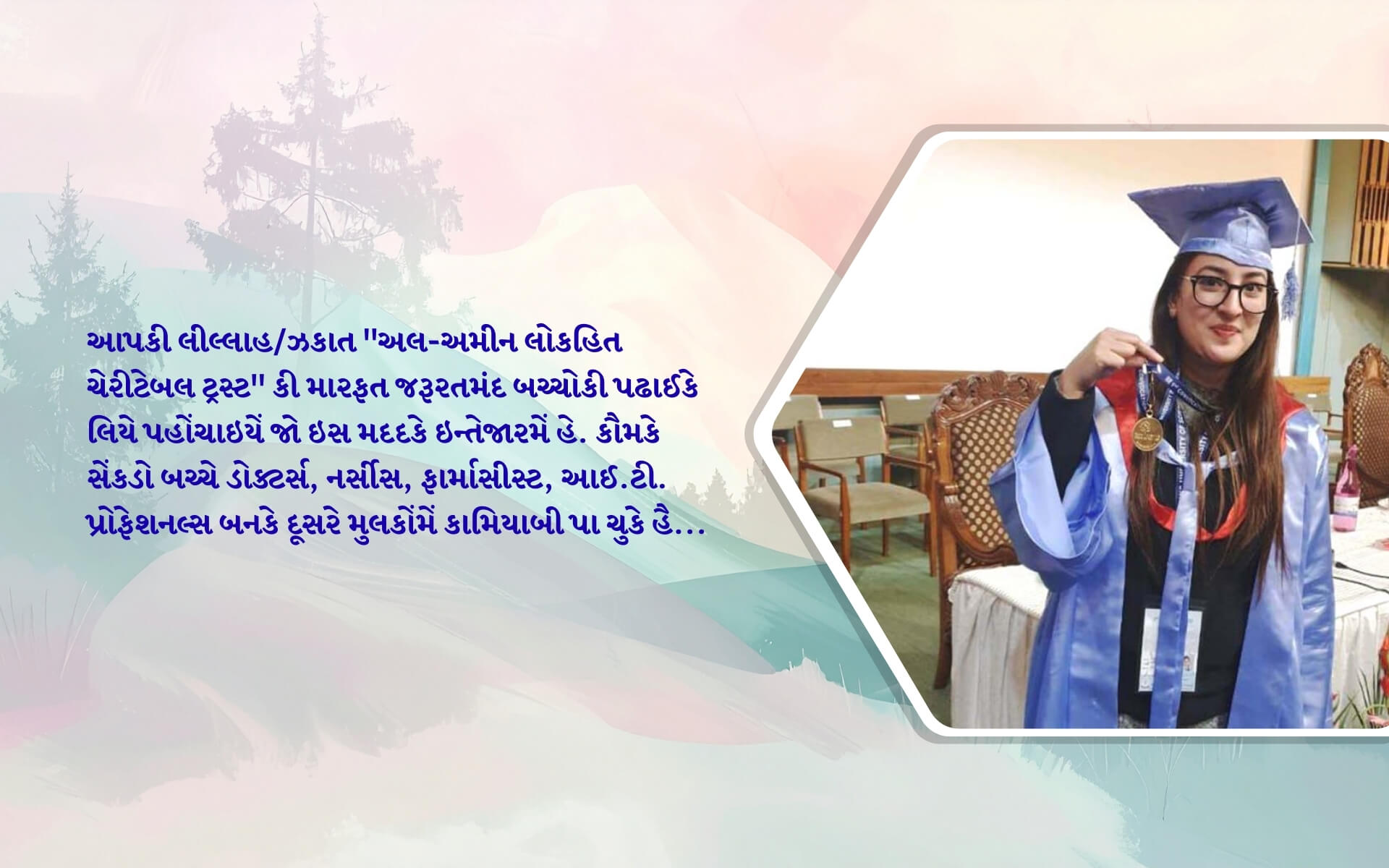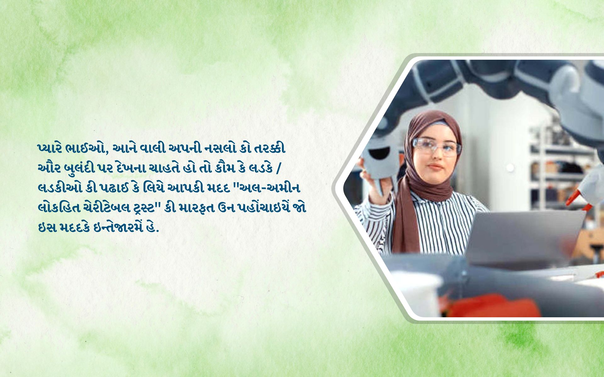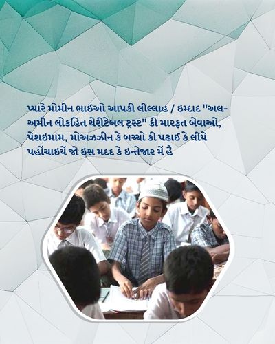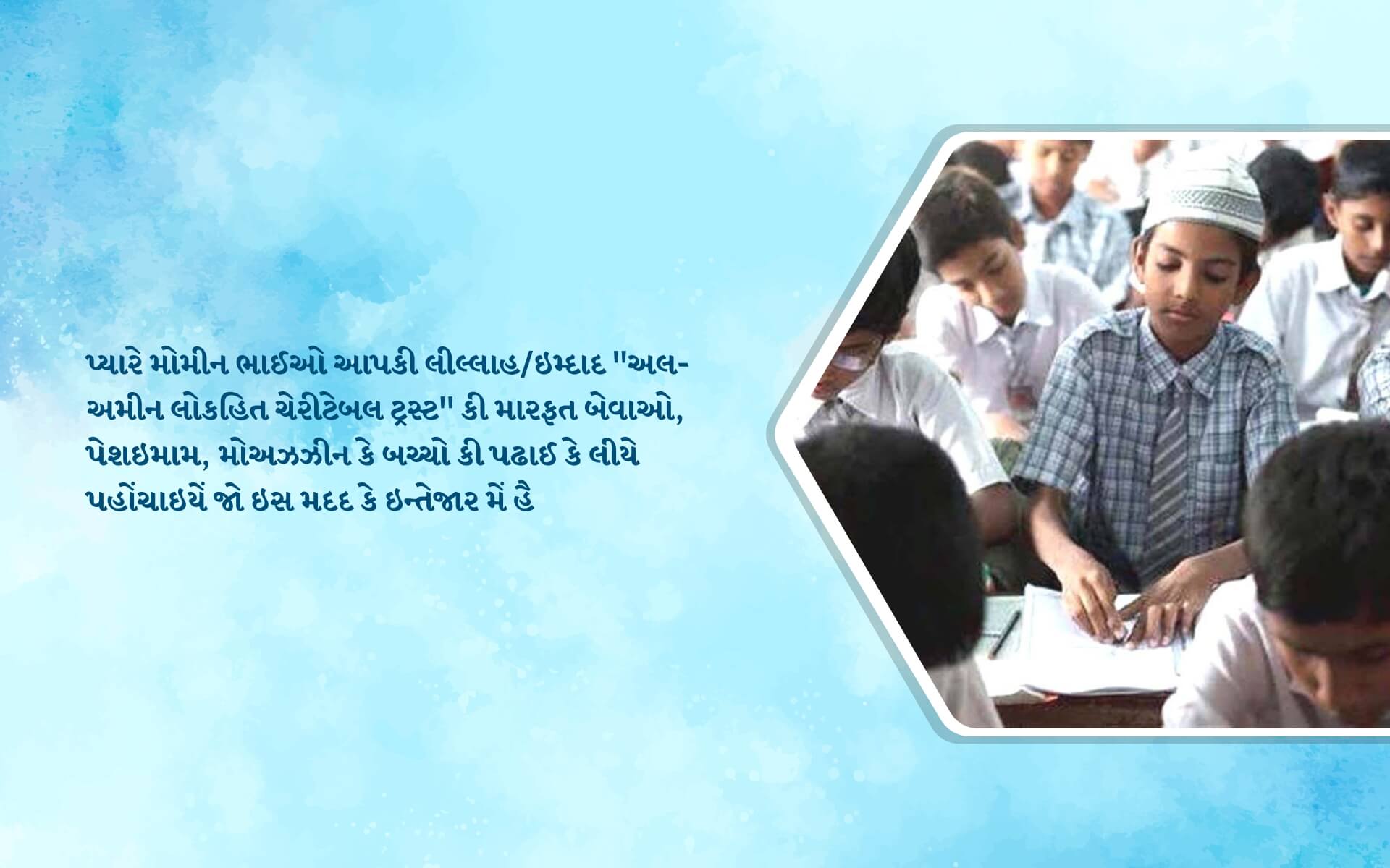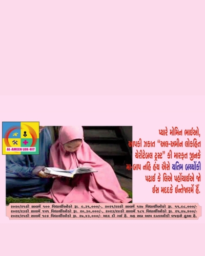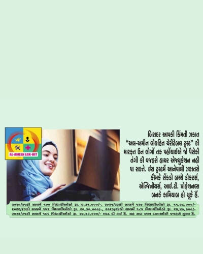 We seek your financial as well as moral support for bright future of our society. Trust enjoys exemption under 80(G) of I.T. Act. The cheque/draft need be drawn in favour of ‘Al-Ameen Lok-Hit Charitable Trust’.